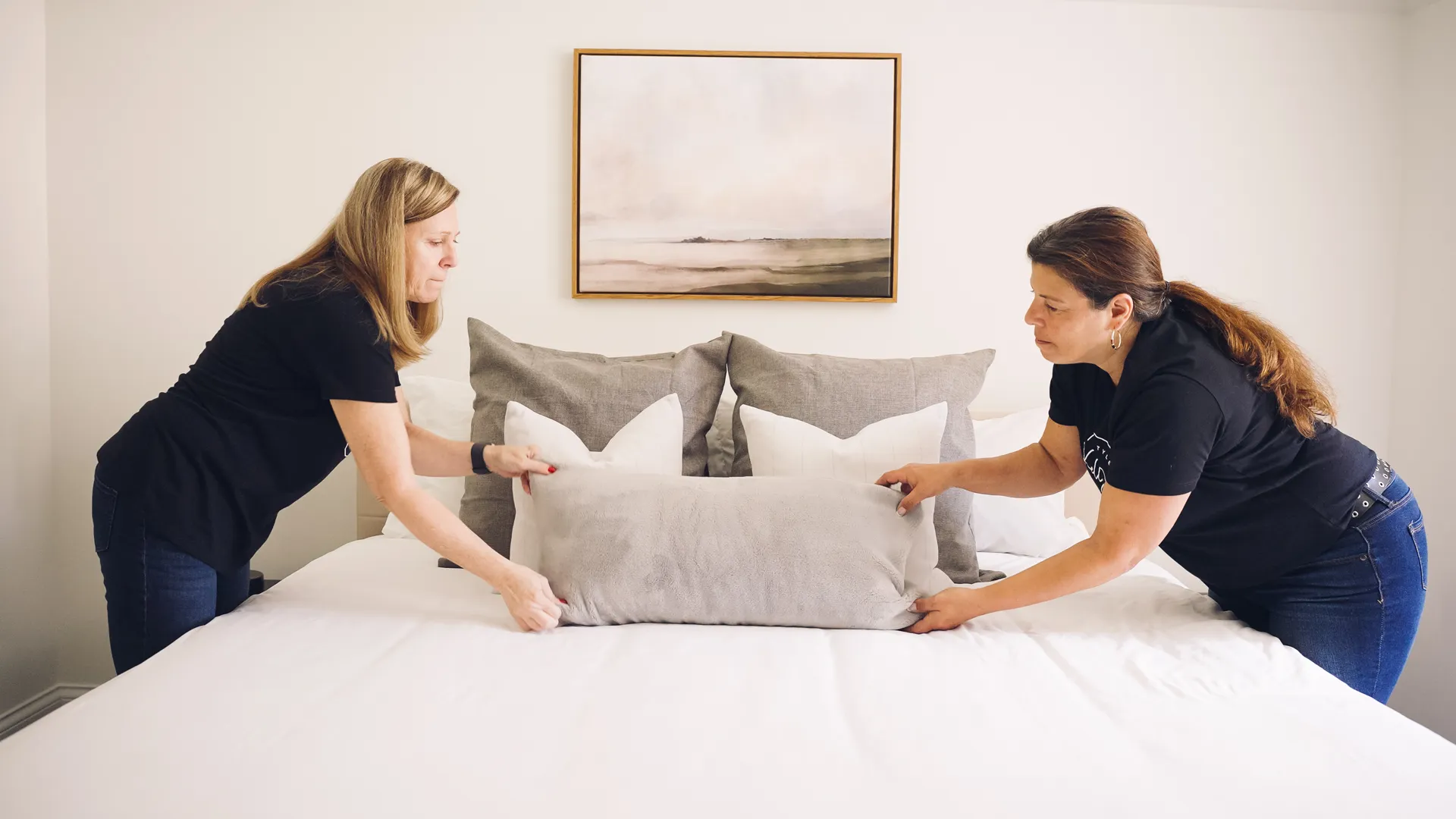 Settle in without lifting a finger. Whether you’re there on move day or not, we’ll make sure your new home feels like home — cabinets stocked, beds made, and everything in its place. Our goal is to create comfort and familiarity, fast. Most moves are completed in a single day, so you can walk in, exhale, and feel completely at home. Here’s how we do it: